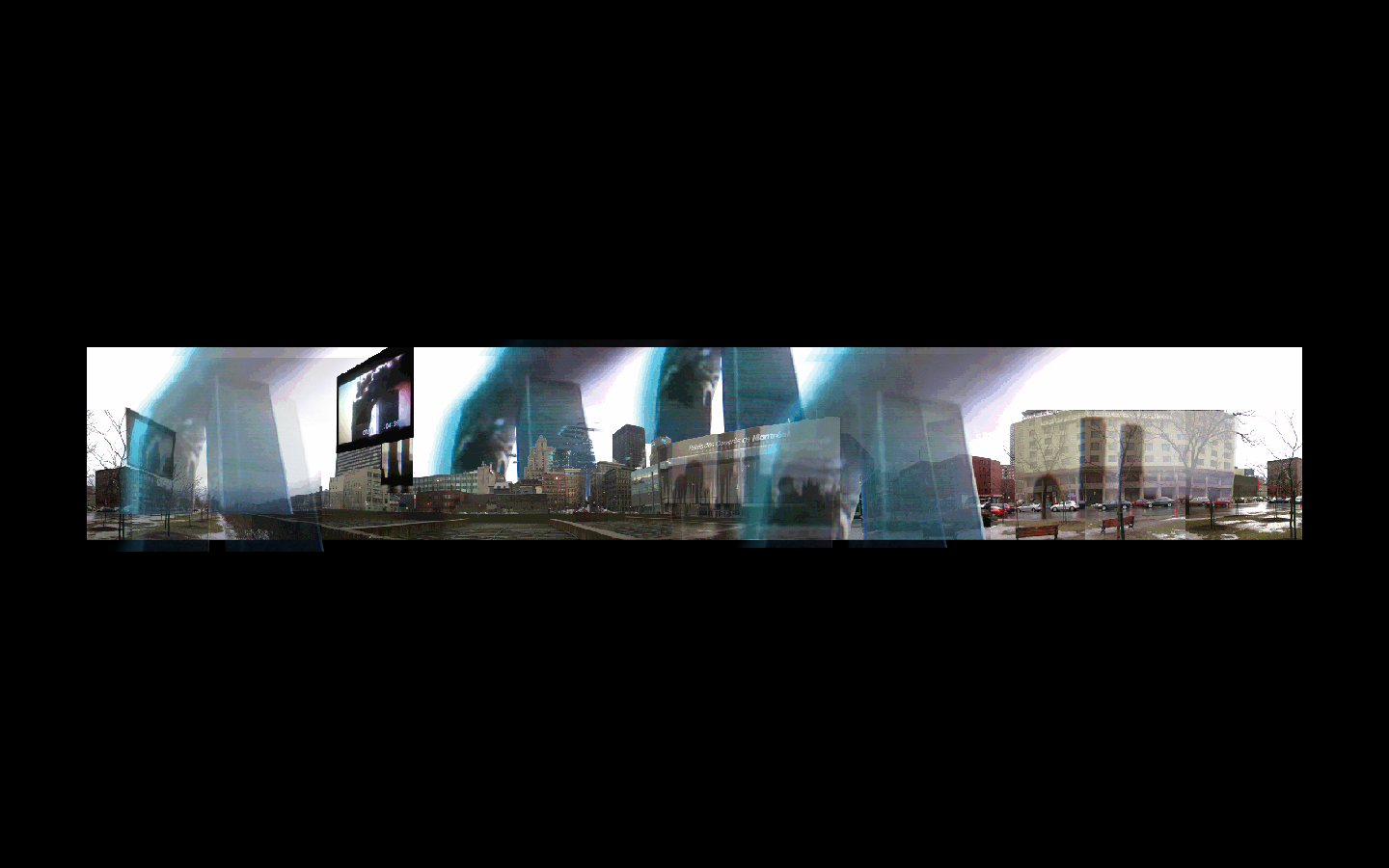 Les Ubiquités publiques Desynchronized Public a été filmé à Montréal sur l’autoroute Ville-Marie, les images dialoguent avec celles des nouvelles télévisées. Le projet expérimente la technique de found foutage et développe la méthode du collage mouvant. Le projet développe également un autre type de collage : le paysage interactif.